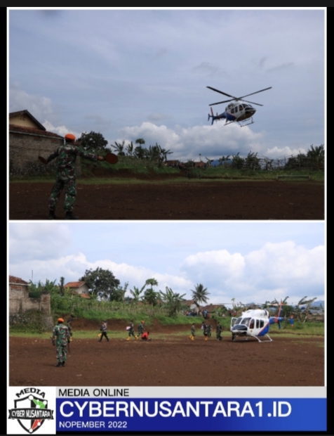 Cianjur, Mako Kopasgat, CYBERNUSANTARA1.ID – VCP Tim Dalpur Kopasgat memandu bantuan Wakapolda Jabar yang dikirim via udara dengan menggunakan heli colibri di Posko Kopasgat, Desa Bunikasih. Minggu (27/11/2022).