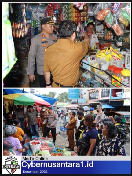 Dairi, Sumut, CYBERNUSANTARA1.ID — Kapolres Dairi AKBP Wahyudi Rahman, S.H, S.I.K, M.M bersama instansi terkait lakukan sidak harga bahan pokok di Pasar Sumbul, Kecamatan Sumbul, Kabupaten Dairi, Selasa 20-12-2022.