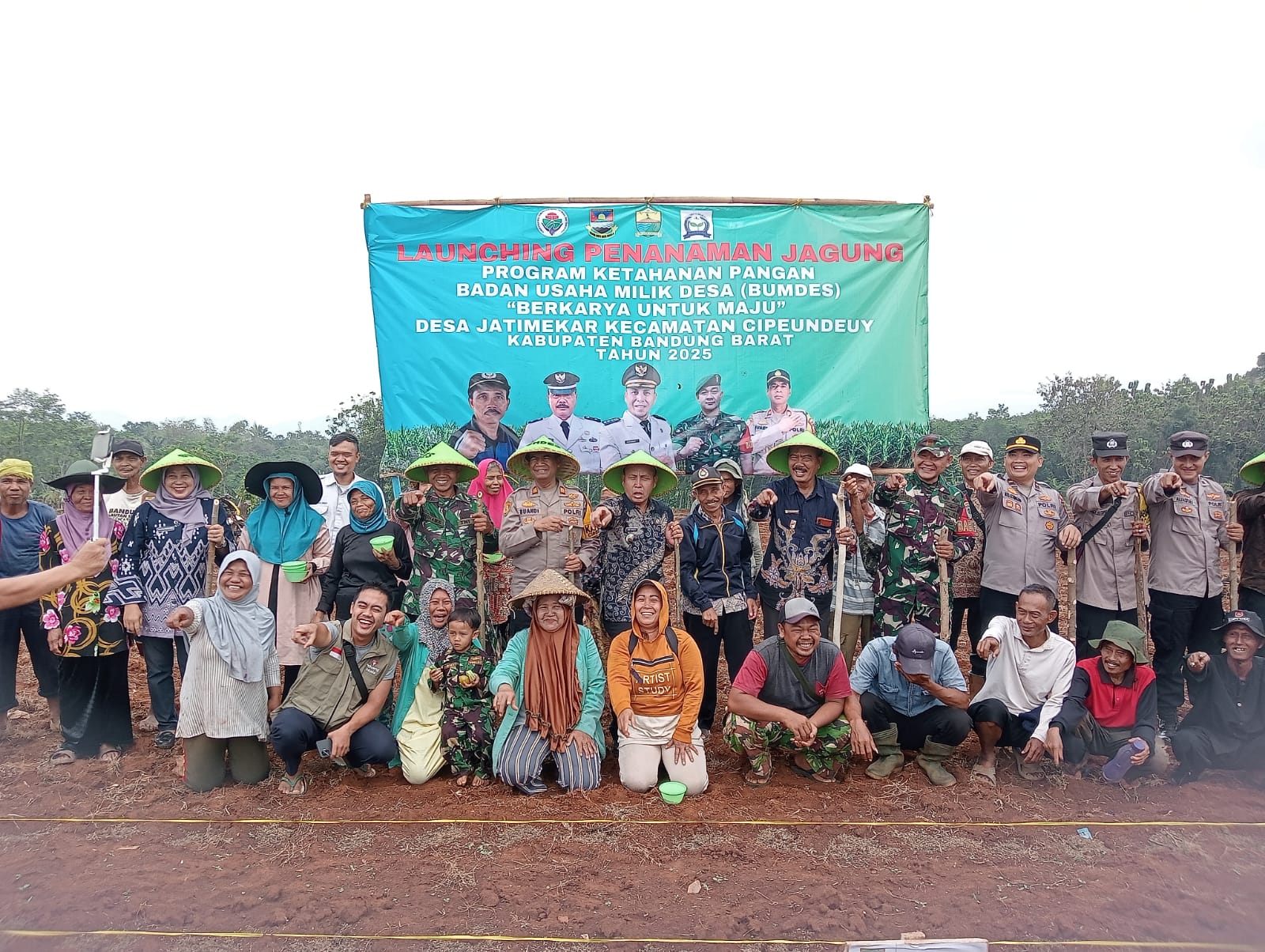 Kabupaten Bandung Barat, CYBERNUSANTARA1.ID – Pemerintah Desa Jatimekar, Kecamatan Cipeundeuy, Kabupaten Bandung Barat, resmi meluncurkan program penanaman jagung seluas 5 hektar, menjadikannya desa dengan area tanam jagung terluas di kecamatan tersebut. Kegiatan ini merupakan bagian dari implementasi dana desa untuk mendukung program ketahanan pangan nasional, 2 Oktober 2025.