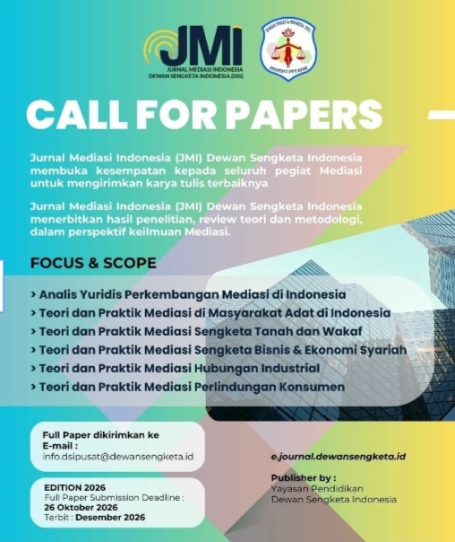 Melalui pengumuman ini, DSI mengajak para penulis untuk mengirimkan artikel ilmiah terbaik yang mengangkat berbagai perspektif, inovasi, maupun praktik mediasi sebagai bagian dari penyelesaian sengketa yang efektif dan berkeadilan.